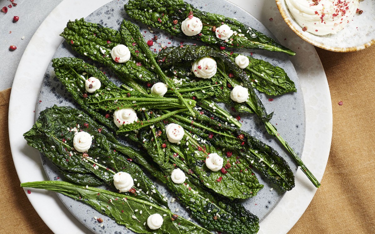 Mix the goat cheese with a little oil and the lemon zest. Serve the chips sprinkled with sesame seeds, dollops of goat cheese and a little coarsely ground pink pepper.