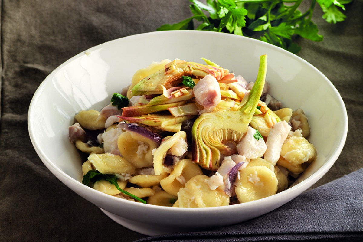 Divide the orecchiette between plates, add the artichokes and serve immediately.
